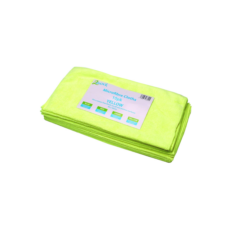 2Work Microfibre Cloth 400x400mm Yellow (Pack of 10) CNT01625