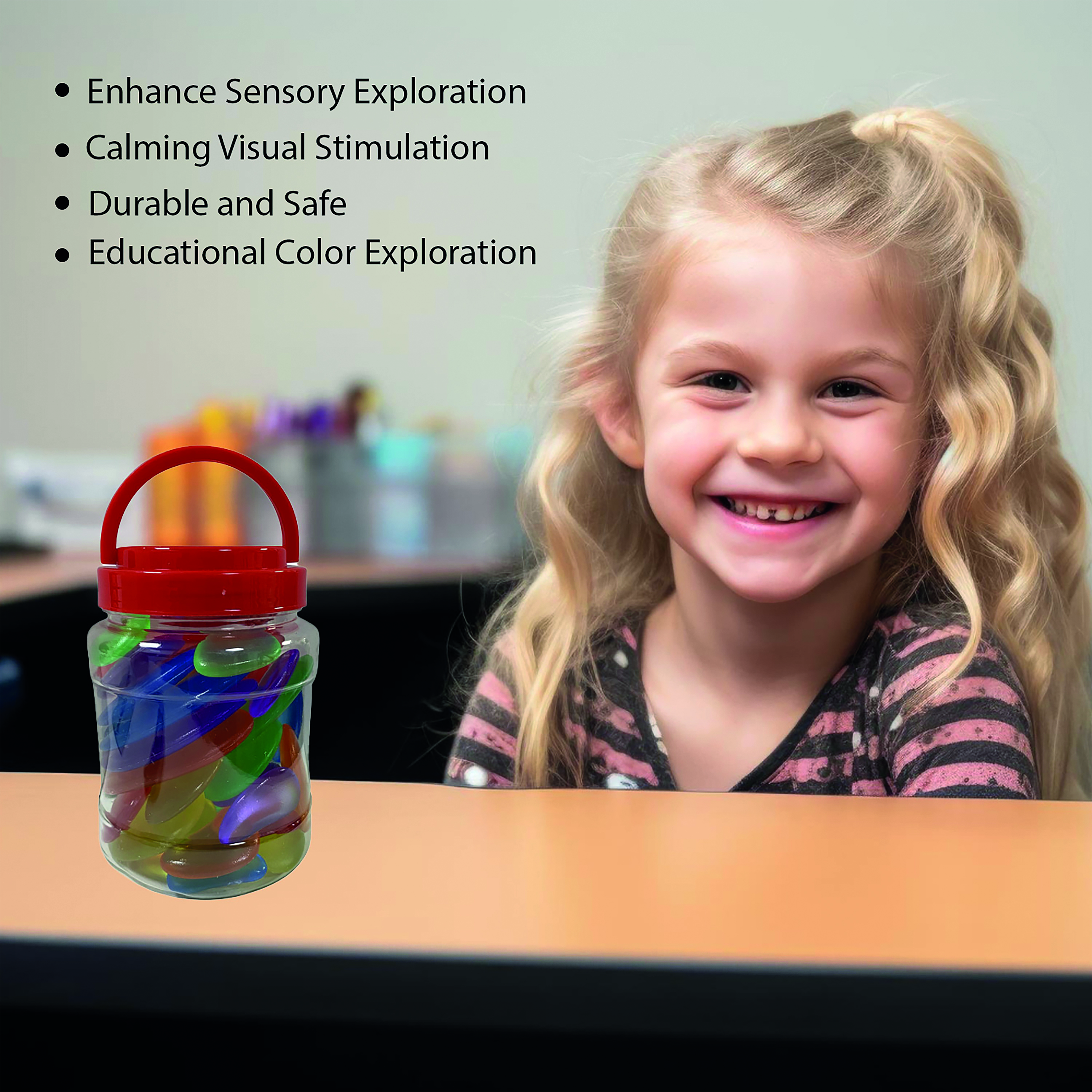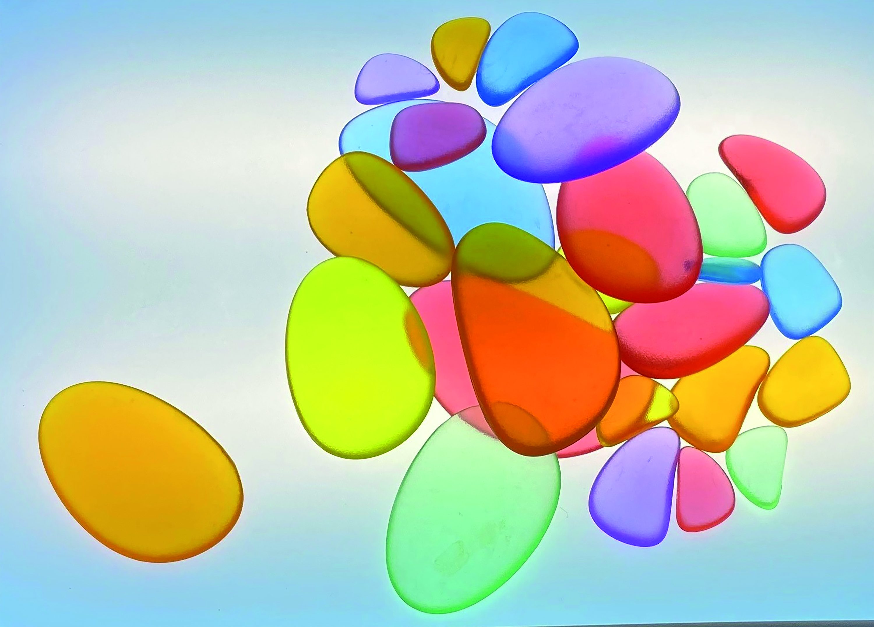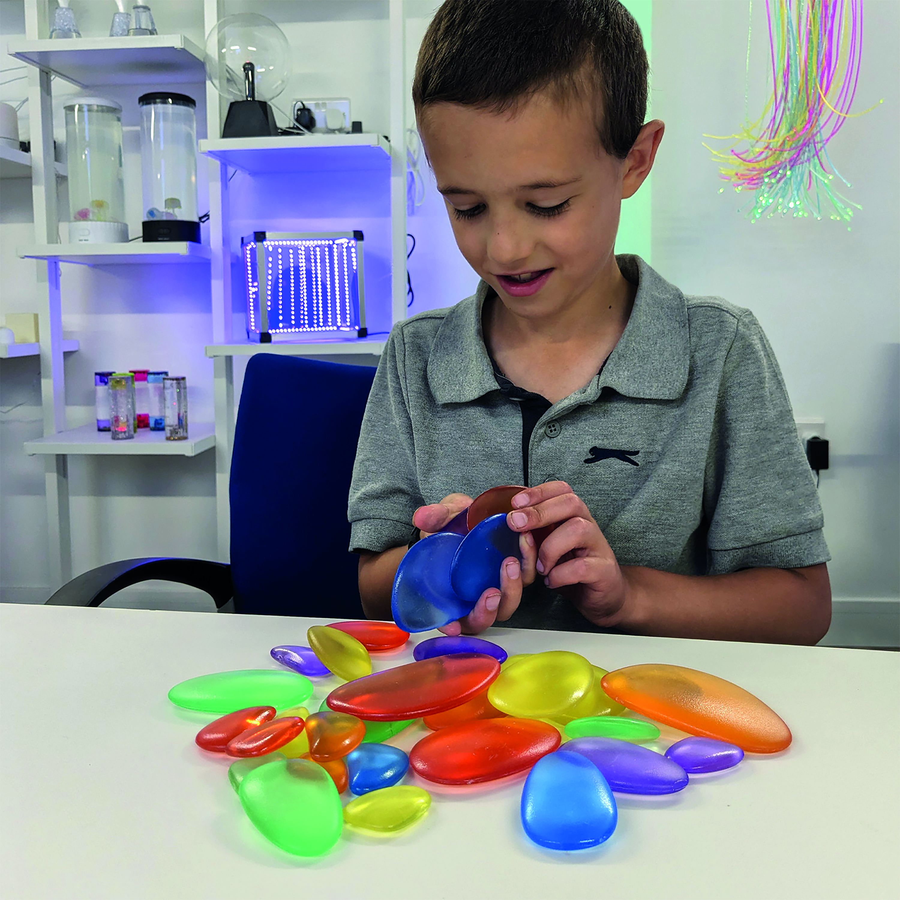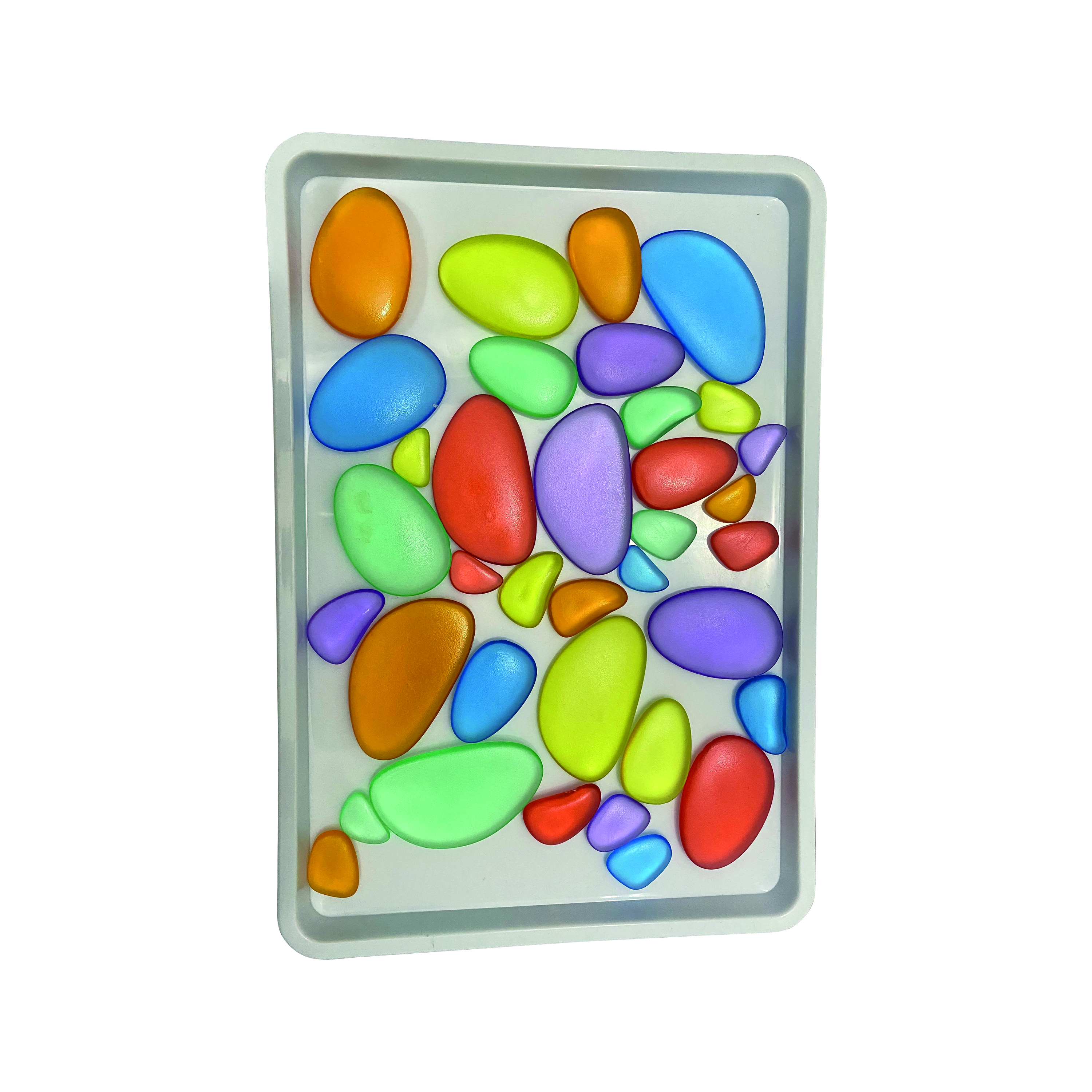 This large bag of acrylic pebbles contains a total of 30 pieces in various sizes and an array of vivid colours. The translucent colourings make the idea for any light table.