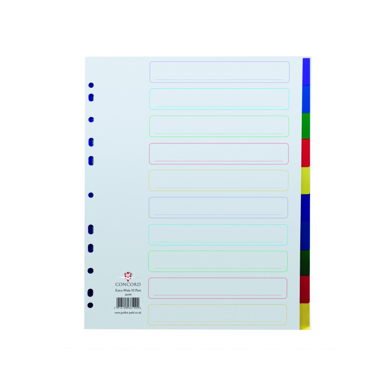 Concord 10-Part Extra Wide Index Polypropylene Multicoloured A4 66199