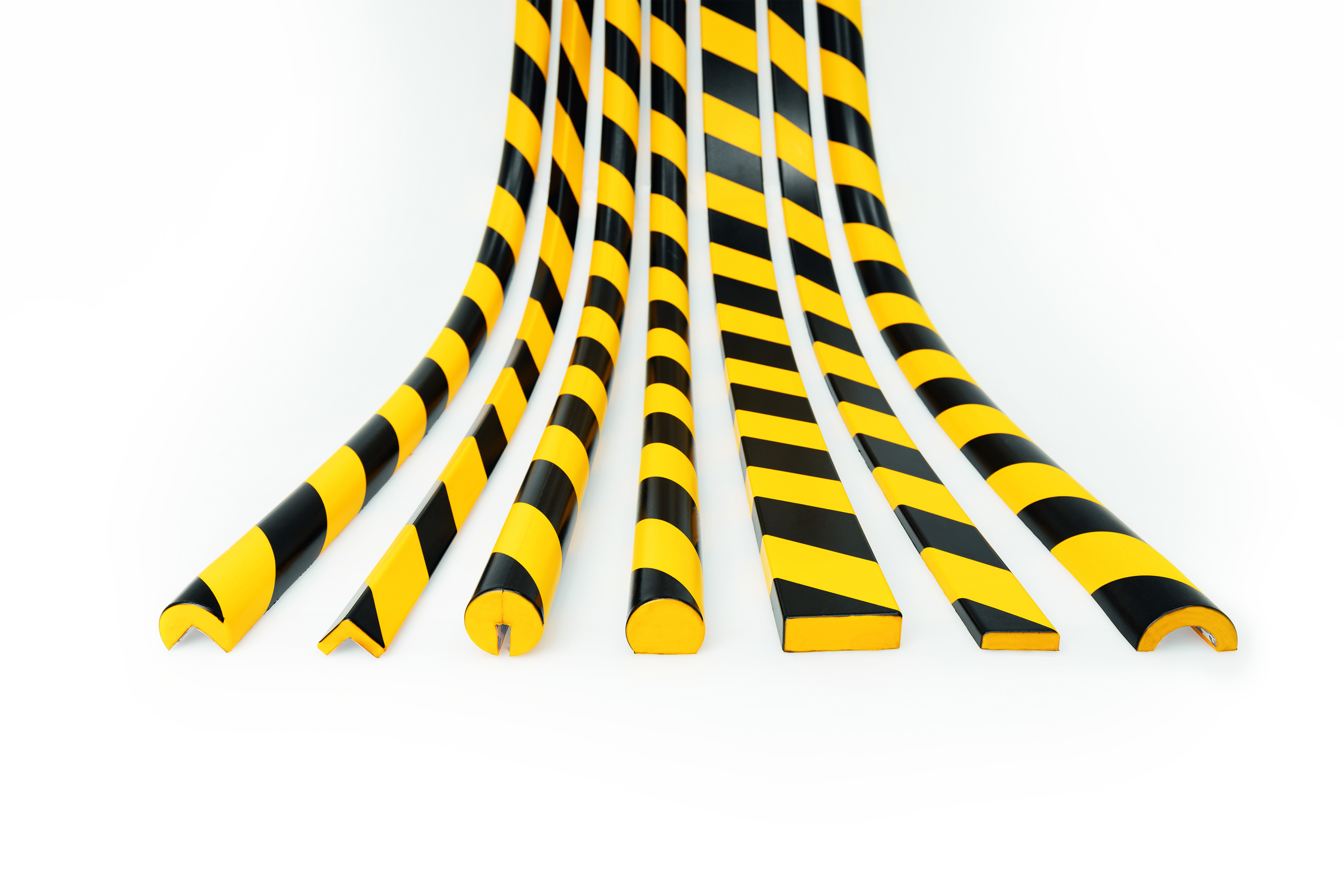 Edge Protection Profile is a self-adhesive, flexible edge protection profile made of Polyurethane foam. Suitable for indoor use only. Ideal for securing shelves, sharp edges, T-beams etc. in manufacturing, shipping areas and warehousing, basements, stairwells and garages. Marks danger spots, mitigates impact injuries and prevents damage to vehicles and transport trolleys. Profiles can be shortened to the desired length with a sharp cutter knife. Colour according to ASR A1.3 similar to RAL 1003/9004 (signal yellow/signal black). Fire test according to DIN EN 13501-1 class E.