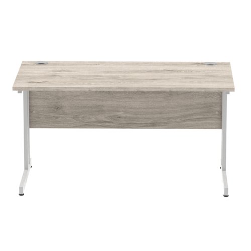 Impulse 1400 x 800mm Straight Office Desk Grey Oak Top Silver Cantilever Leg