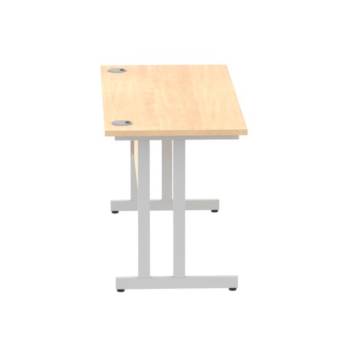 Impulse 1400 x 600mm Straight Office Desk Maple Top Silver Cantilever Leg