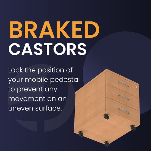 Impulse mobile pedestal | 25mm top | Full 18mm back board | 2mm abs protective edges | Steel handles | Solid box drawer construction | Filing rails fit A4 filing only (Filing rails only available on the 2 drawer variant) | Smooth running castors for mobility | Steel to steel fixings | Lockable drawers | Heat resistant melamine finish