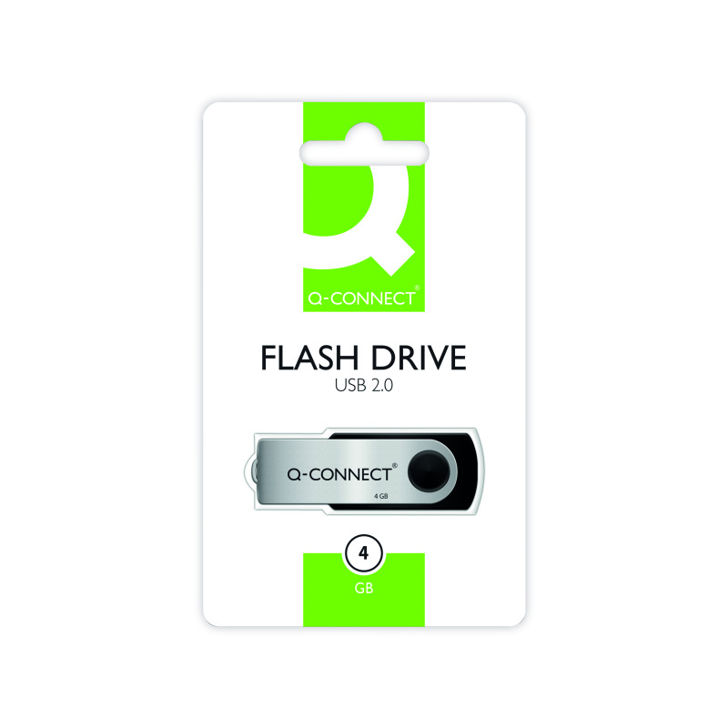 The compact and stylish Q-Connect USB 2.0 Swivel Flash Drive is an economical choice for file transfer and backup. It features a convenient 360 degree swivel casing to protect the USB connector from damage - no cap to lose. There's also a lanyard hole for easy portability. Suitable for Windows and Mac computers, this drive contains 4GB of storage for documents, video, photos and more.
